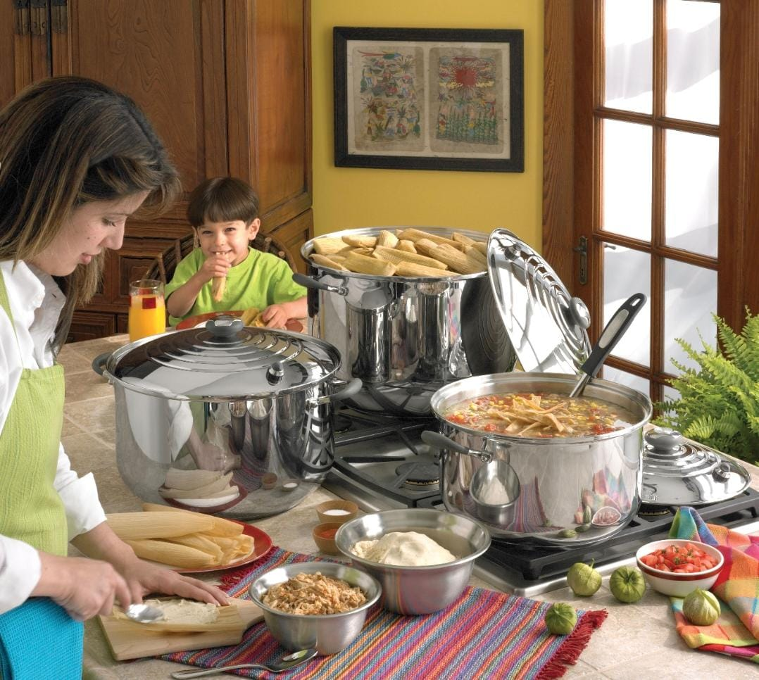 Las Ollas de Gran Capacidad Royal Prestige® están diseñadas para cocinar grandes cantidades de alimentos de forma uniforme y saludable. Fabricadas en acero inoxidable de alta calidad, son ideales para familias, eventos y preparaciones abundantes.