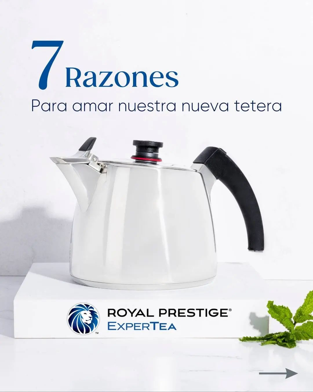La Tetera Expertea Royal Prestige® de Acero Quirúrgico fue creada para quienes valoran el ritual del té como un momento de bienestar y calidad. Su diseño permite calentar el agua de manera uniforme y controlada, logrando una correcta extracción de aromas y sabores en cada infusión.